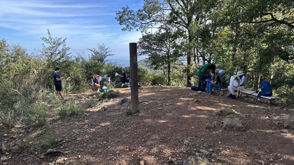 「岩茸石山」で昼食を摂っていると外国人の若者が集団で登って来ました。