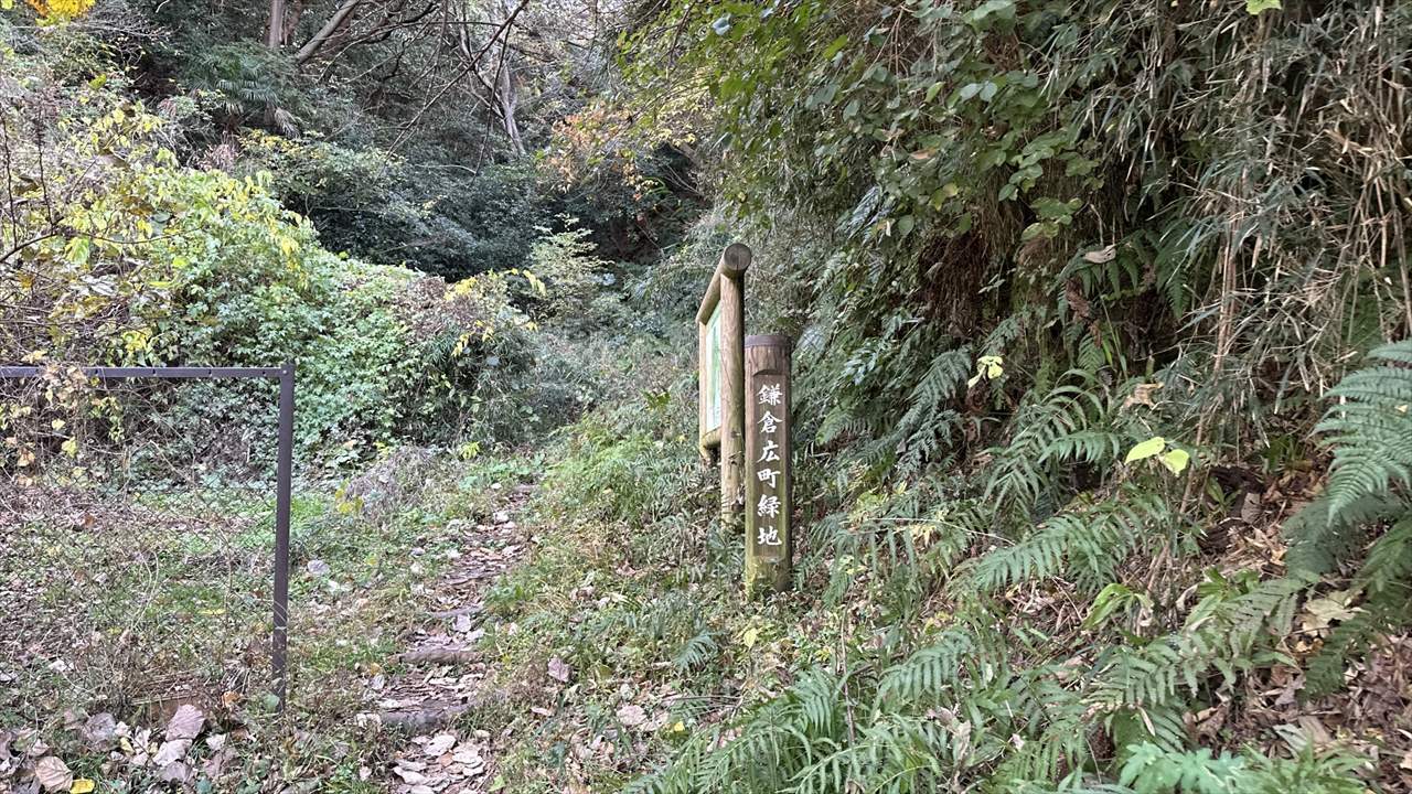 この窪地が「うさぎ山」?            「鎌倉緑地鎌倉山入口」