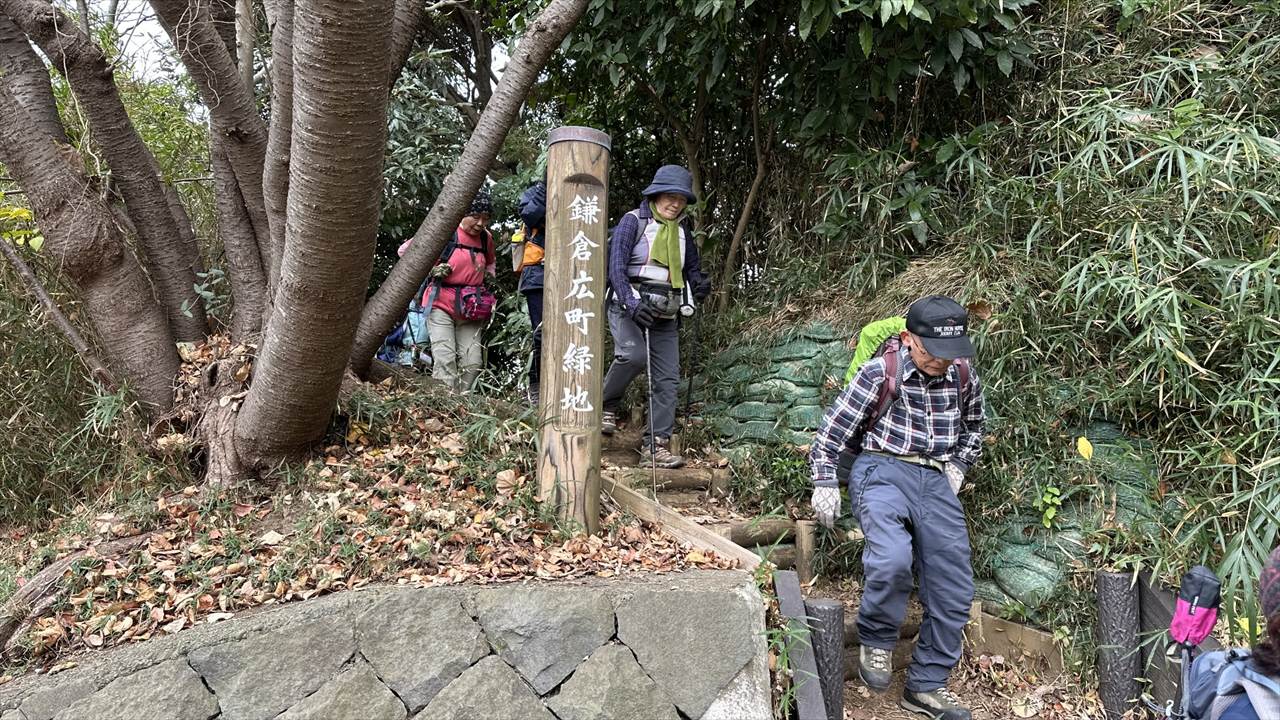 -   ST 西鎌倉 09:17 – 09:27 中川バス停 – 09:34 鎌倉緑地室ヶ谷入口 – 09:42 峯山 – 10:15 うさぎ山 – 10:34 鎌倉緑地鎌倉山入口 – 10:55 鎌倉山神社 – 11:14 稲村ヶ崎小学校 – 11:18 極楽寺 – 11:40 長谷配水池(昼食) – 12:17 大仏切通し – 13:18 葛原岡神社 – 13:40 浄智寺 – 13:52 東慶寺<解散> – 14:00 北鎌倉駅