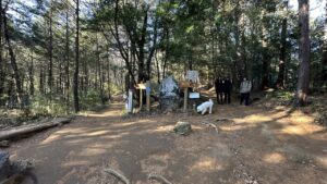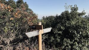 - ST 武蔵横手駅 09:20 – 10:12 横手山 – 10:49 345mピーク – 11:33 ヤセオネ峠 – 11:40 物見山 – 12:45 (売店)ふじみや – 12:59 高指山 – 13:32 日和田山 – 13:47 金刀比羅神社(コトヒラジンジャ) – 14:01 男坂・女坂分岐 -14:10 日和田山登山口 – 14:19 鹿台橋 – 14:30 高麗駅