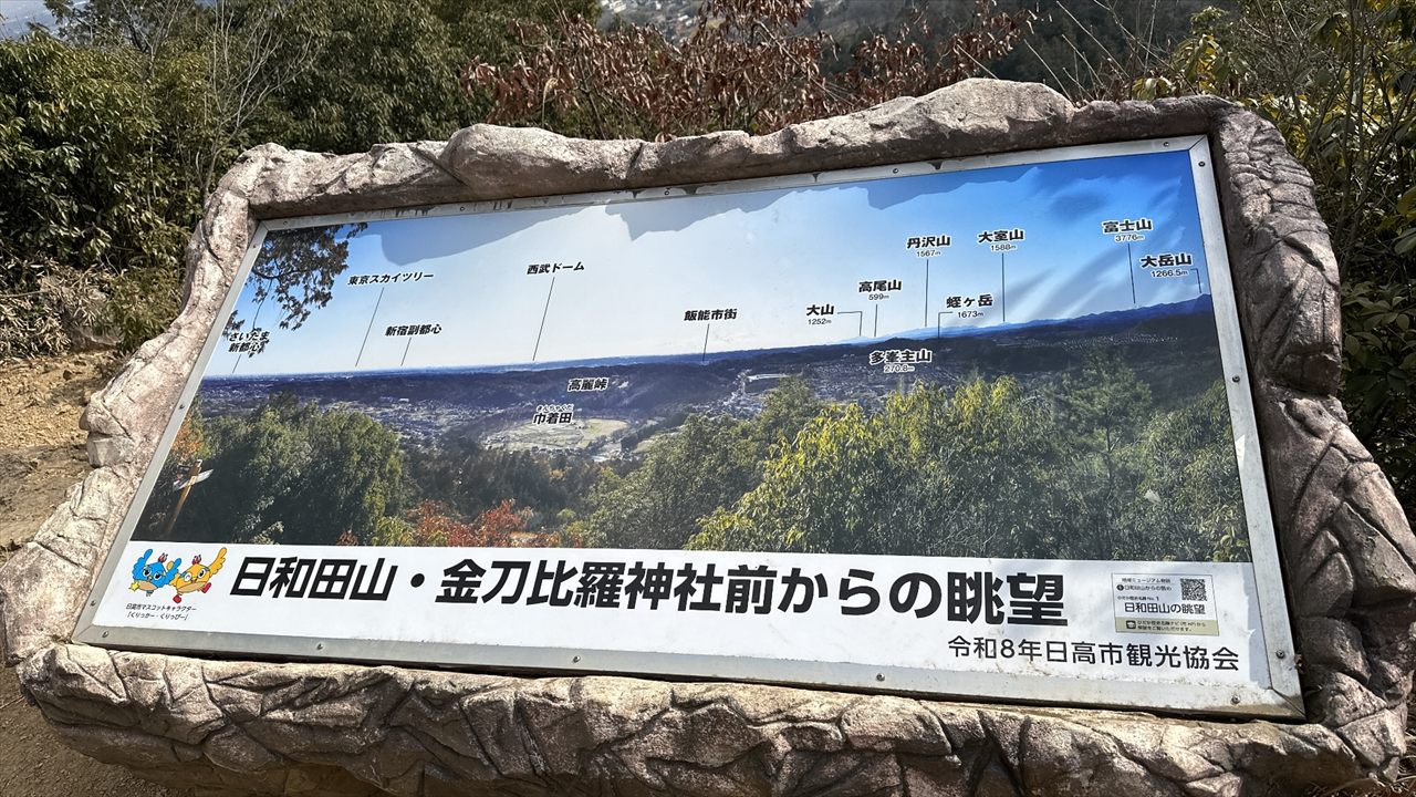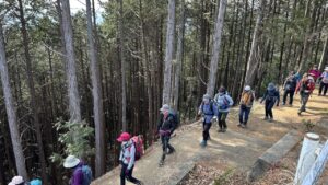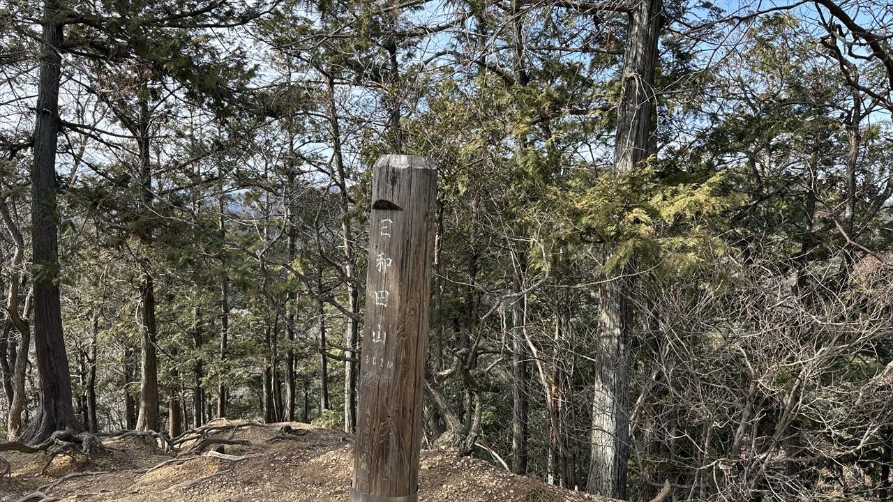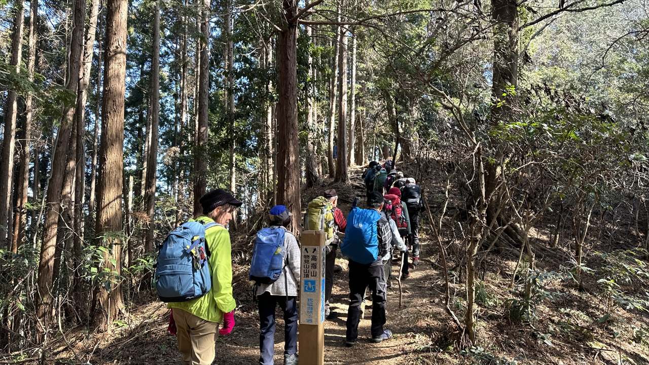 - ST武蔵横手駅 09:22 – 10:06 横手山 – 10:38 345mピーク – 11:14 ヤセオネ峠 – 11:17 物見山 – 11:34 (売店)ふじみや – 11:44 高指山(昼食)12:25 – 12:45 日和田山 – 13:09 金刀比羅神社 – 13:23 男坂・女坂分岐 – 13:30 日和田山登山口 – 13:50 鹿台橋 – 14:05 高麗駅