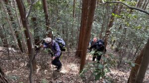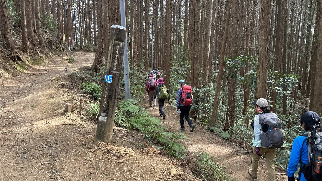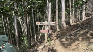 そこを過ぎた西尾根分岐の左側ルートが「黒尾根」で、久保地区の下山口(登山口?)まで1時間10分かけて