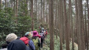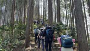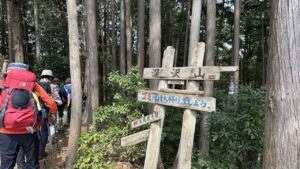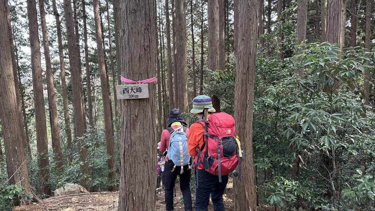 東尾根に戻って、そこから比較的急登の「西大峰(別名大峰高峰)」を経て、「北向地蔵」まで歩きます。そして、北向地蔵の車道と登山道の交差する辺りでお昼を食べました。