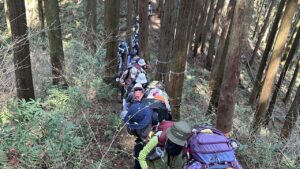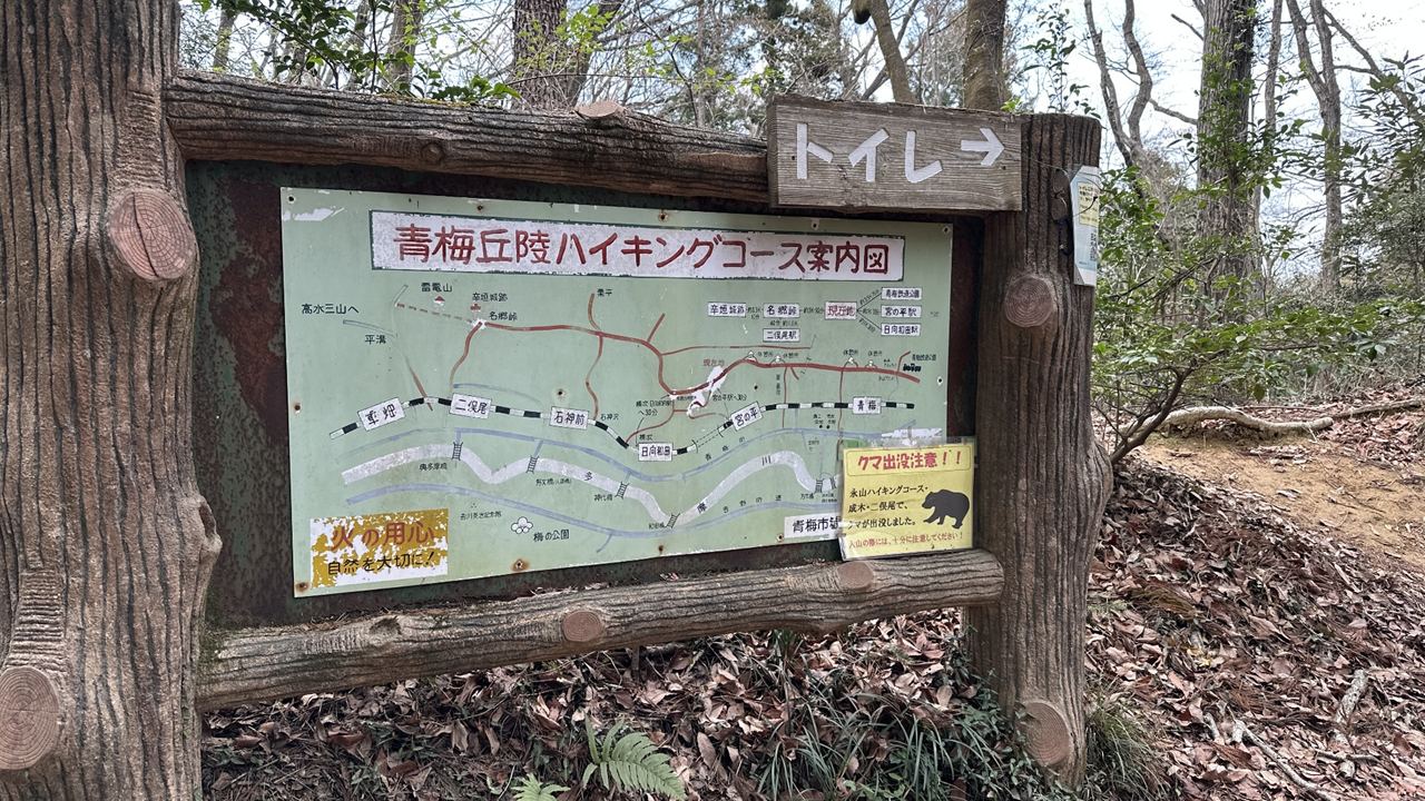 このコースは青梅線の「軍畑駅」から長い車道を歩いて、「榎峠登山口」から「雷電山」へ登り、そこから青梅丘陵を青梅駅に向かって歩くコースで、2023年12月に「雷電山」というタイトルで東ハイ山行を行っています。https://b2jp.com/2023/12/02/raidenyama
