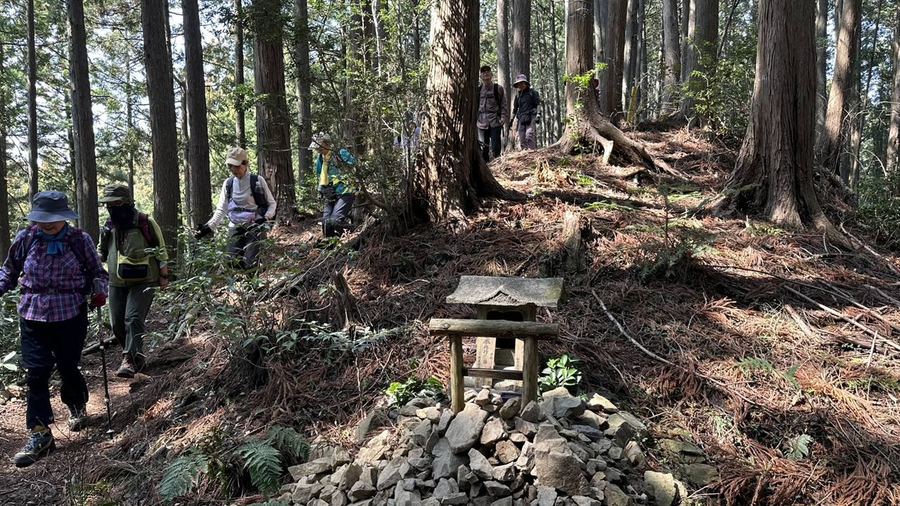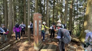 - ST 09:45 軍畑駅 – 10:12榎峠登山口 – 11:00 雷電山 – 11:25 辛垣山分岐 – 11:39 辛垣山 – 11:57 名郷峠 – 12:10 <昼食> – 12:45 マスガタ山 – 12:54 ノスザワ峠 – 13:06 三方山 – 13:35 黒仁田分岐 – 14:12 日向和田分岐 – 14:19 矢倉台 – 13:55 第四休憩所 – 14:53 第三休憩所 15:06 第二休憩所 – 15:20 梅岩寺